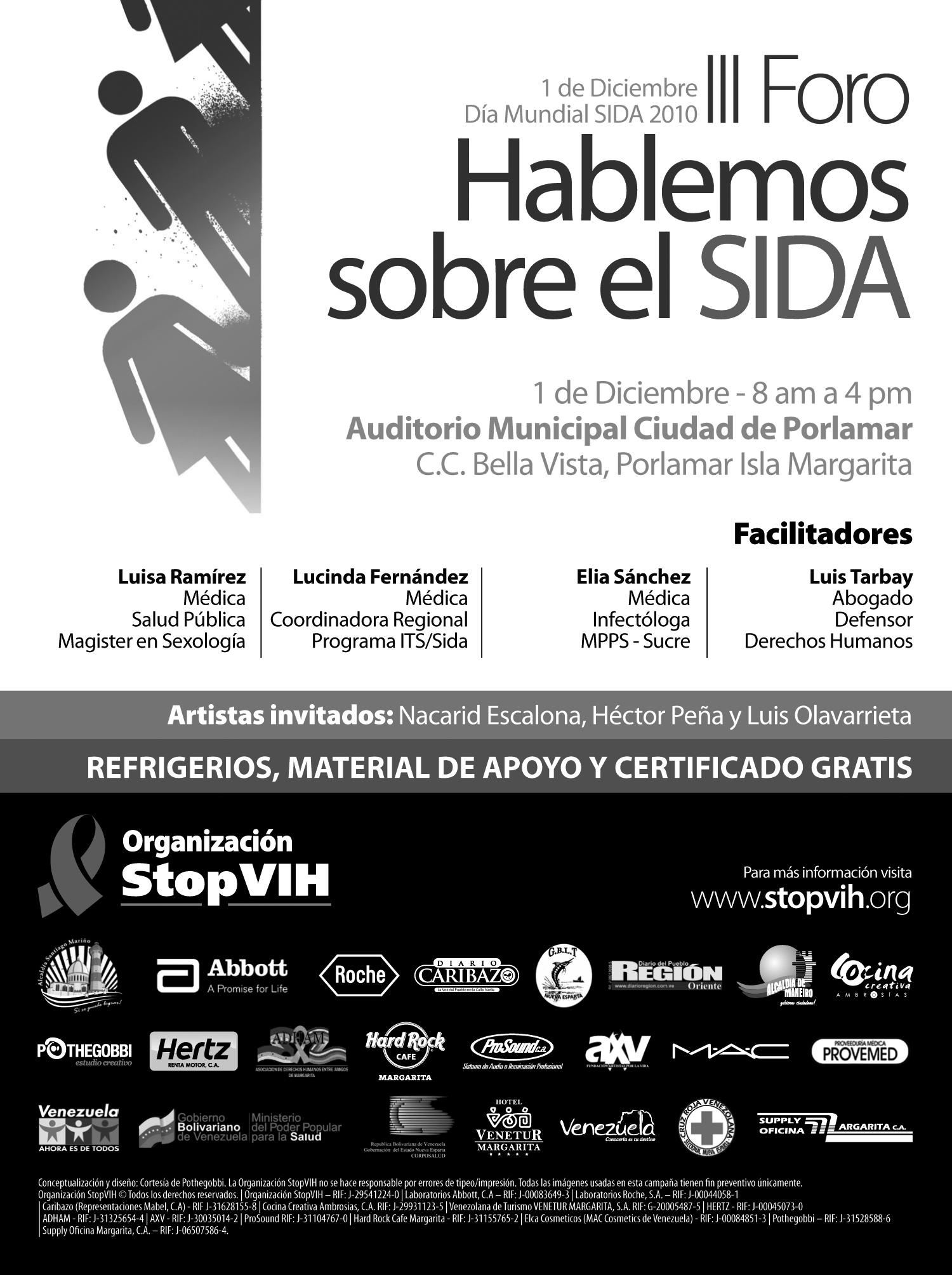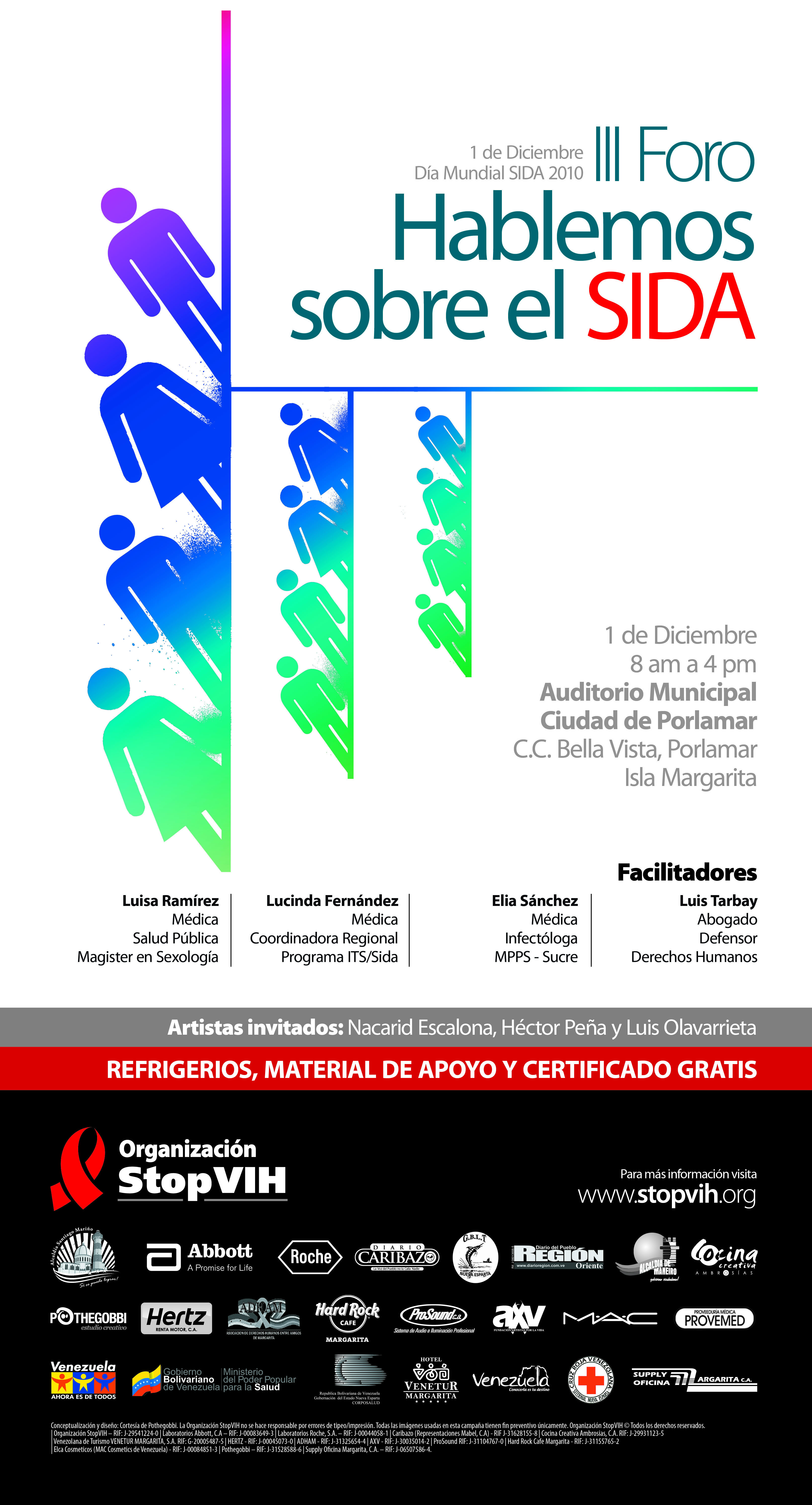 Esta iniciativa es original de la Organización StopVIH en alianza con la Fundación Artistas por la Vida, ADHAM, GLBT Nueva Esparta, Cruz Roja Seccional Nueva Esparta, Dirección Regional de Salud del estado Nueva Esparta y Coordinación Regional del Programa Sida del Ministerio del Poder Popular para la Salud, destacó Rodríguez.