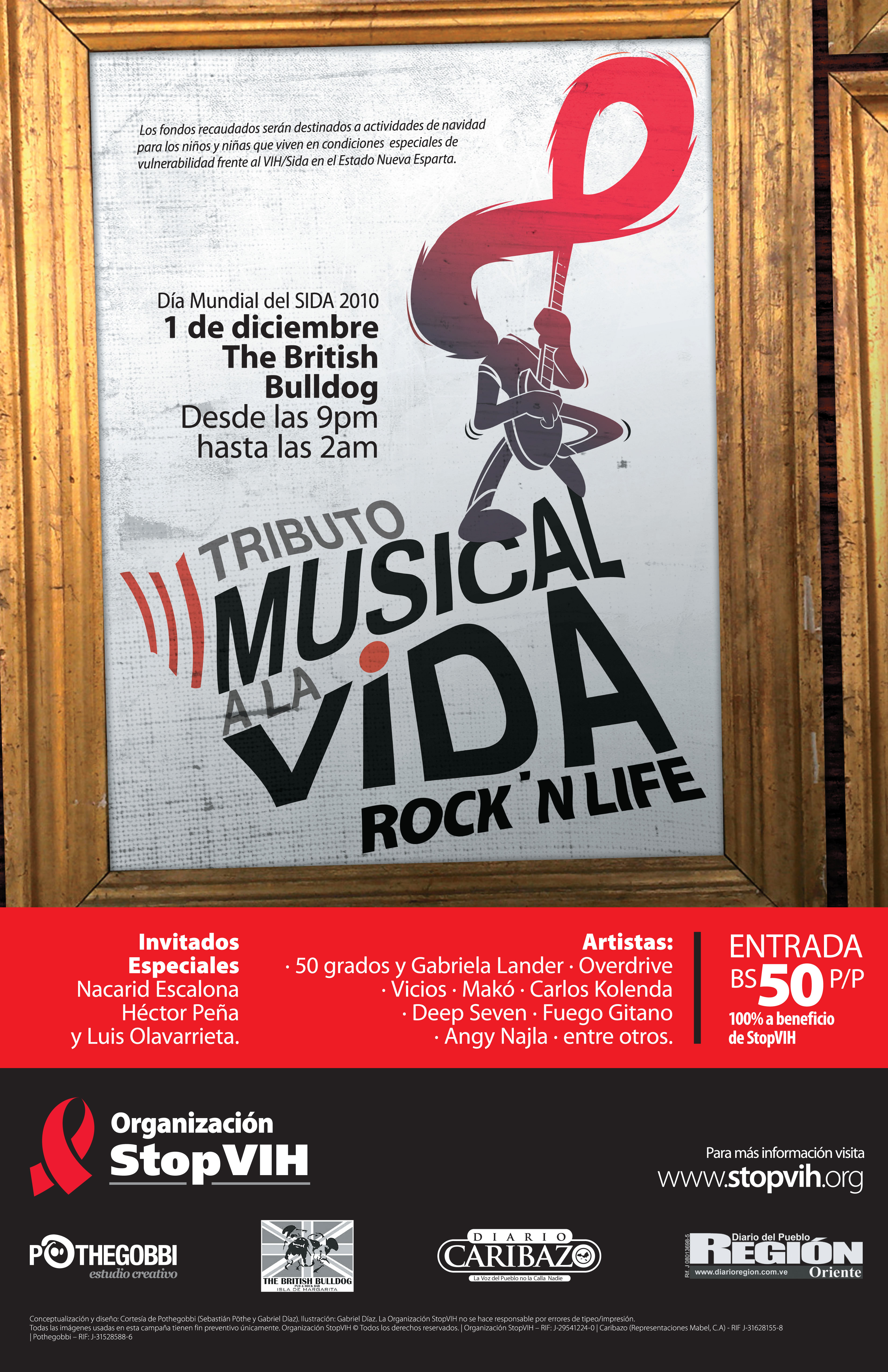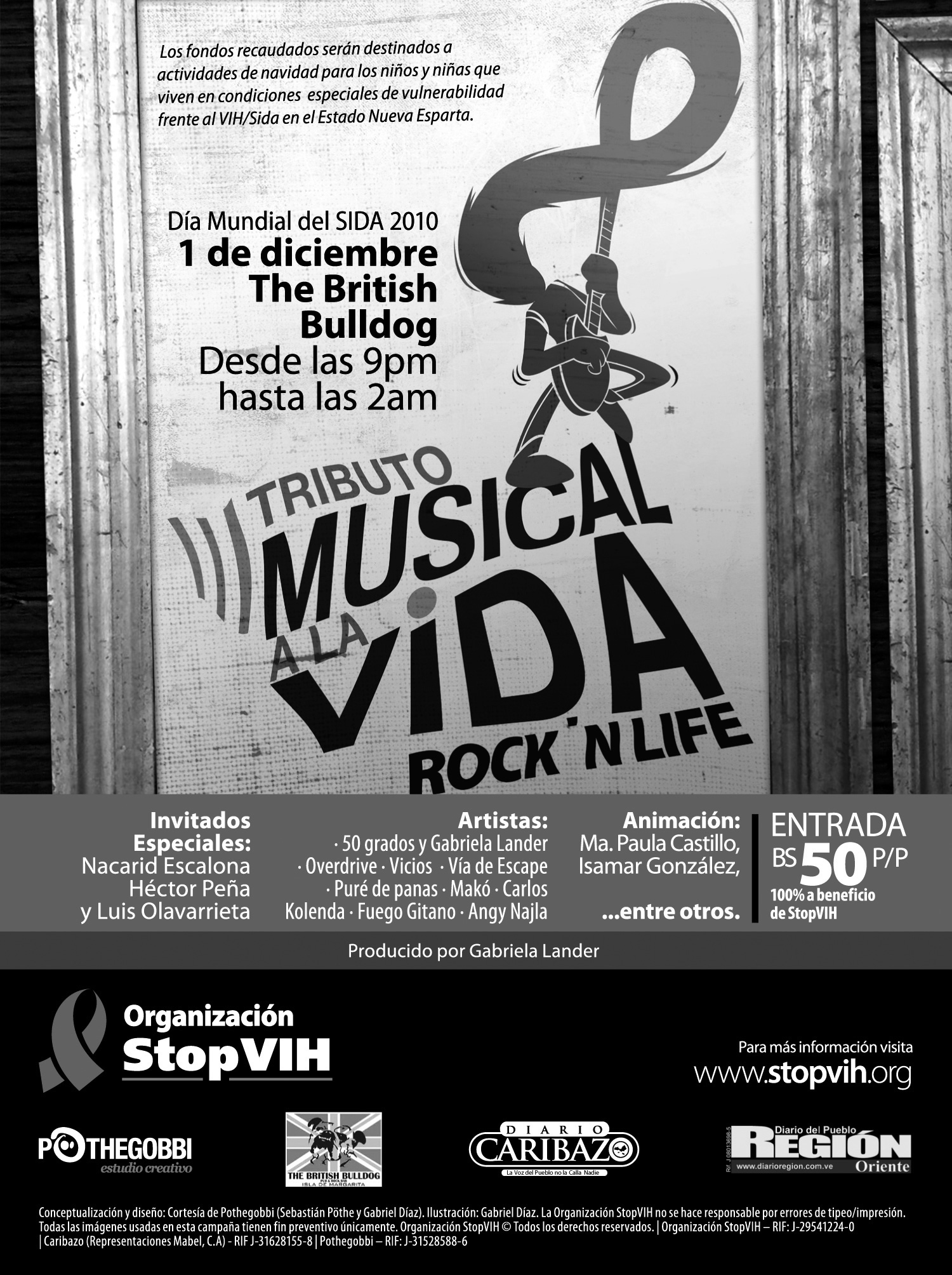 El “Tributo Musical a la Vida”: ROCK ´N LIFE es una idea de la talentosa Gabriela Lander en apoyo a la Organización StopVIH. Este año participarán: 50 Grados y Gabriela Lander, OverDrive, Vicios, Makó, Deep Seven, Carlos Kolenda, Academia de Flamenco Fuego Gitano, Angy Najla, entre otros.